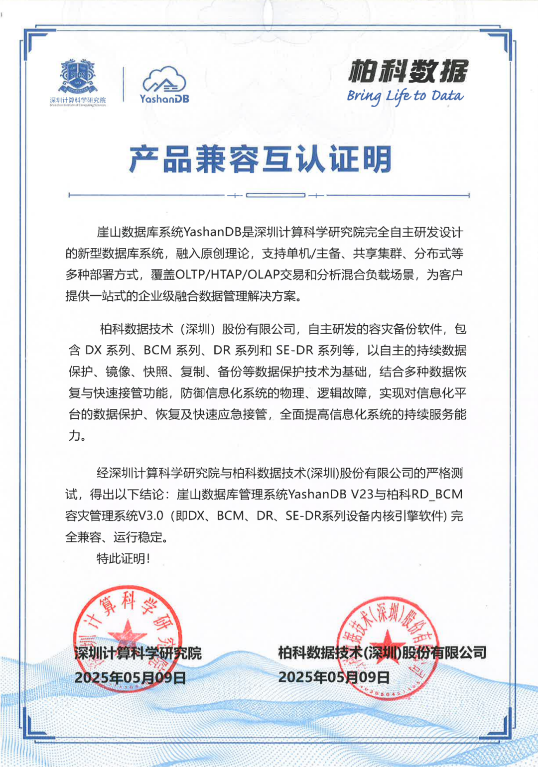 柏科数据🤝崖山科技
