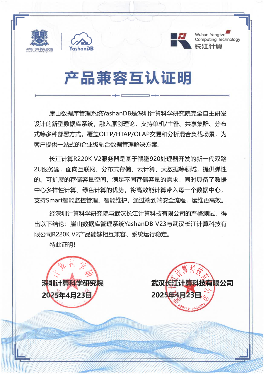 长江计算🤝崖山科技