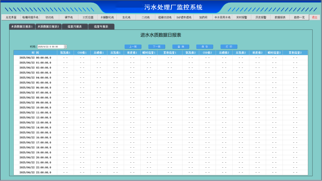 历史数据分析:操作人员可查询历史数据,对数据进行统计分析,如计算水质指标的平均值、最大值、最小值等,分析数据的变化趋势。通过历史数据的分析,可了解污水处理过程的运行规律,为生产管理和工艺优化提供依据。