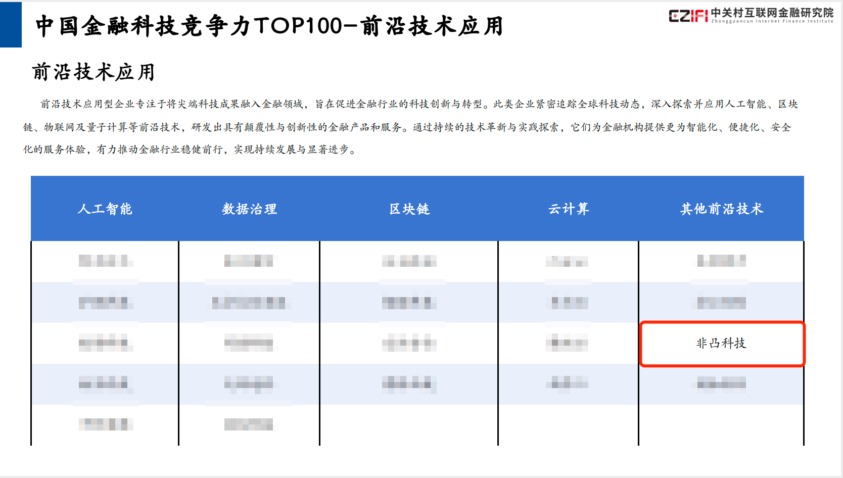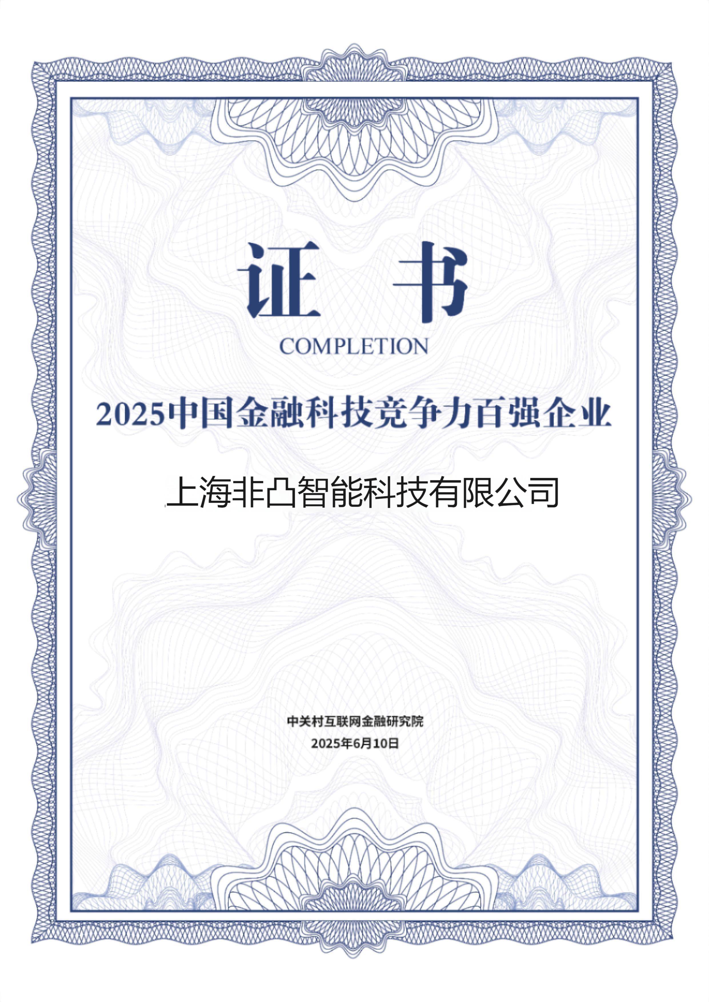 《2025中国金融科技竞争力报告》指出,2024年中国金融科技市场规模达3949.6亿元,同比增长9.7%,人工智能、区块链等技术与金融场景的深度融合正成为行业创新的核心驱动力。本次评选中,中关村互联网金融研究院通过科学严谨的评分体系,联合专家团队对企业进行多维度评估,将百强企业划分为“综合服务与技术平台、垂直领域创新、前沿技术应用”三大类别。此次,非凸科技成功入选百强榜单,并成为“前沿技术应用”类标杆企业,是业界对非凸科技创新能力和技术价值的双重肯定。