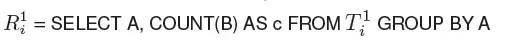 当根节点服务器收到上述查询时,它确定出所有tablet(可以把一个column-stripe理解成一个table,称之为T,table被分布式存储和查询时可认为T进行了水平拆分,tablet就相当于一个分区),重写查询为如下: