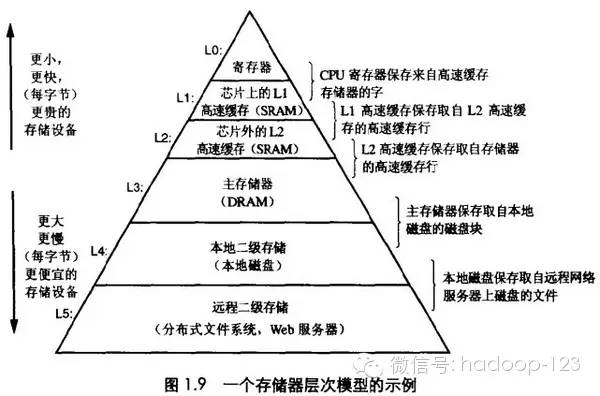 我们的目标是做一个可靠的,支持大规模扩展和容易维护的系统。计算机里面有个locality(局部性定律),如图所示。从下到上访问速度越来越快,但存储代价更大。