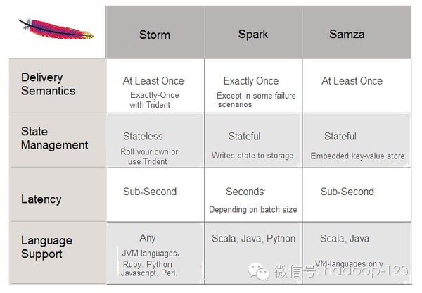 LinkedIn主推的流式计算框架。与其他类似的Spark,Storm做了几个比较。跟Kafka集成良好,作为主要的存储节点和中介。