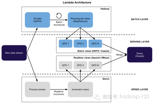Nathan写了文章《如何去打败CAP理论》How to beat the CAP theorem,提出Lambda Architecture,主要思想是对一些延迟高但数据量大的还是采用批处理架构,但对于即时性实时数据使用流式处理框架,然后在之上搭建一个服务层去合并两边的数据流,这种系统能够平衡实时的高效和批处理的Scale,看了觉得脑洞大开,确实很有效,被很多公司采用在生产系统中。