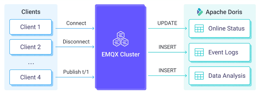 近日,EMQX 5.10.0 版本正式发布。EMQX 现已全面支持将 MQTT 数据实时集成至 Apache Doris 及其兼容数据库,实现高效存储、实时分析和强大的数据可视化能力。