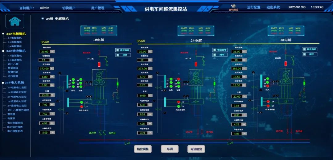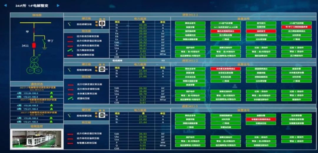 在整流集控中心,系统实现了对8个整流所、30台整流机组及配电设备运行状态的实时监控,支持单台设备重点监控及多源数据自由切换。