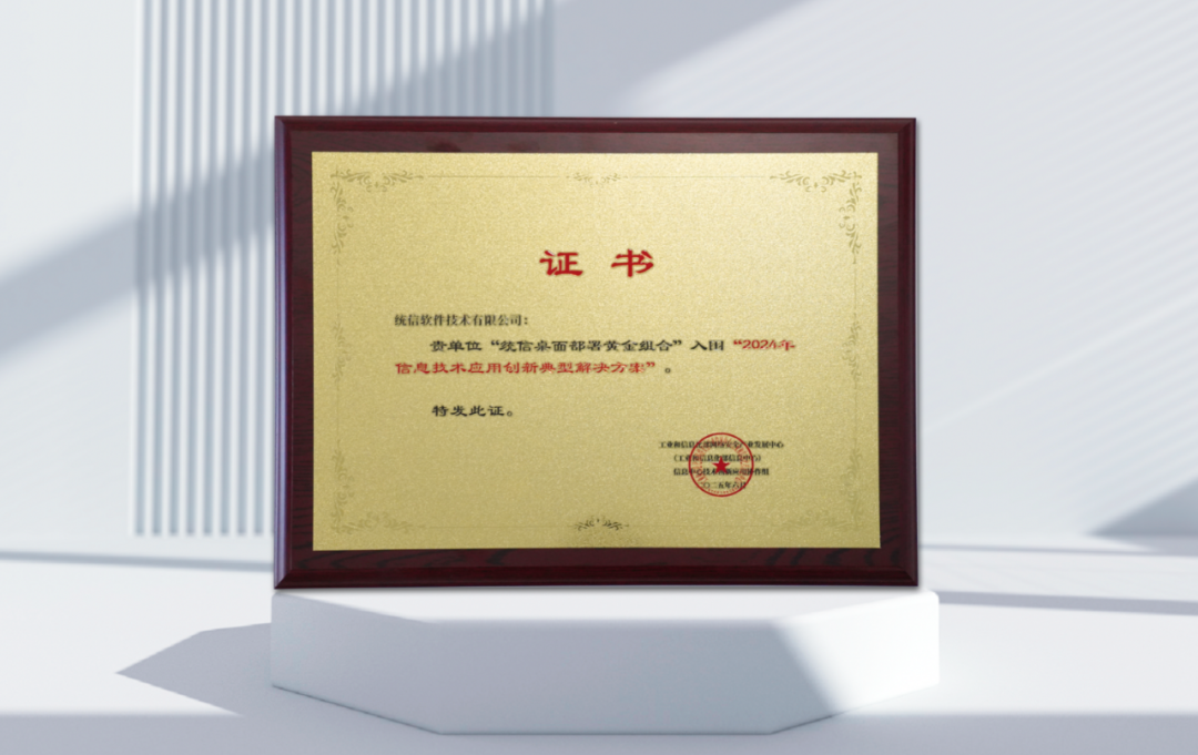 会上,2024 信息技术应用创新解决方案征集成果发布,“统信桌面部署黄金组合”荣获“2024 信息技术应用创新解决方案典型解决方案”,以表彰其加快国产信息化项目落地实施、推动行业应用拓展与深化。