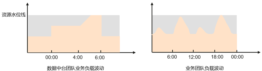 但是在细粒度的时间维度上,例如具体到每周甚至每日,传统的扩容模式仍然以资源超配的方式对抗业务负载波动。考虑图2中的场景,公司的数据中台团队,在每天的凌晨12点到凌晨6点执行ETL,完成大数据量的数据离线导入;业务团队每天作业负载呈现出无规律的负载波动。传统扩容的资源超配将会浪费大量资源,使用成本高。