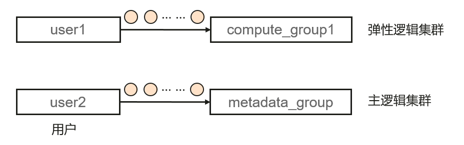 后续团队发现,由于user1提交的作业负载太高,一个弹性VW仍然不能满足需求,而且,user2提交的作业负载也需要卸载一部分到弹性VW执行。但是出于经济成本考量,在额外新建2个弹性VW成本很高。最好的方式是新建一个弹性VW,新建的弹性VW能够处理user1和user2的作业。此时,团队可以选择elastic路由策略。团队只需要执行以下DDL: