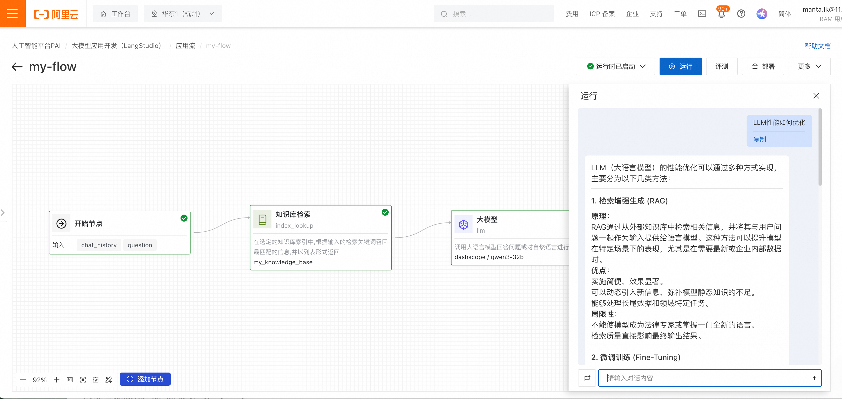 大模型&Agent应用开发平台(PAI-LangStudio)是依托阿里云PAI产品核心能力构建的面向企业级用户的一站式大模型应用开发平台。简化了企业级大模型应用的开发流程,同时提供了灵活的可编程能力、实时调试能力与链路追踪的能力,帮助开发者快速构建端到端的AI应用。原生兼容支持通义系列Qwen系列大模型。PAI-LangStudio专注于提供LLM全链路开发部署能力,可支持发布有状态、多Agent的复杂工作流发布部署成PAI-EAS模型服务,并在生产环境提供API应用服务。