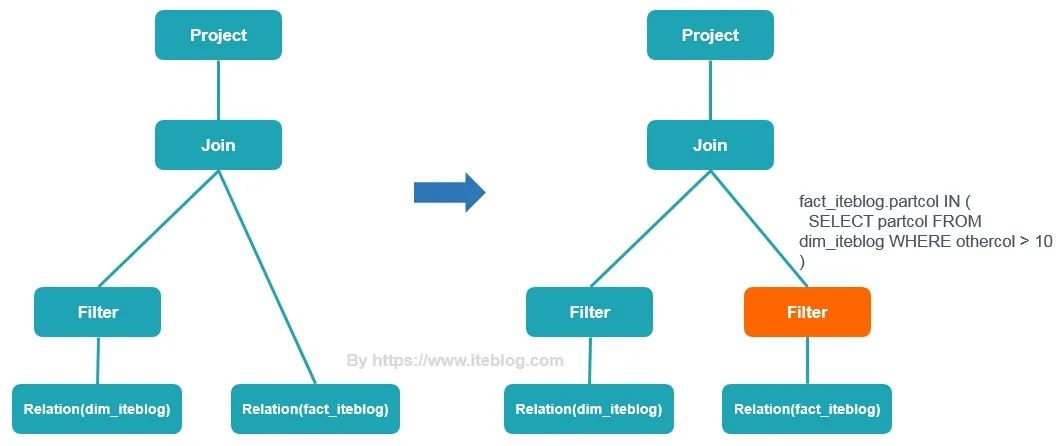 SELECT * FROM fact_iteblogJOIN dim_iteblogON (dim_iteblog.partcol = fact_iteblog.partcol)WHERE dim_iteblog.othercol > 10