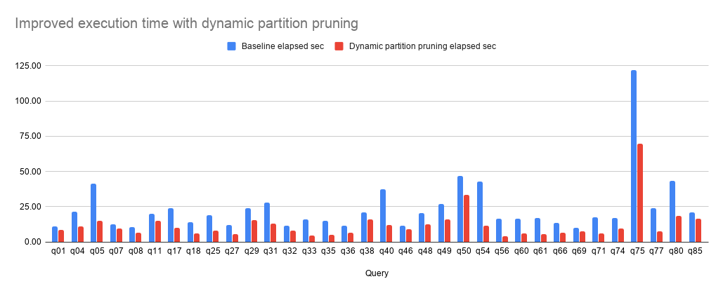 分区表动态过滤和 Spark 的 DPP 效果类似。假设我们有以下的查询语句: