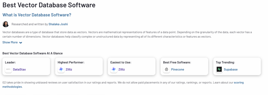 那么,G2 的参考性有什么?Zilliz又凭什么拿下双重认可?本文将做出重点解读。