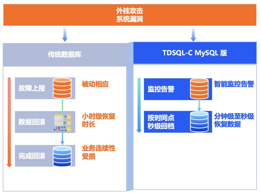 面对数据安全领域的重大挑战,腾讯云数据库通过技术创新,将数据恢复模式从“被动应急”升级为“主动”,形成了三大核心技术优势: