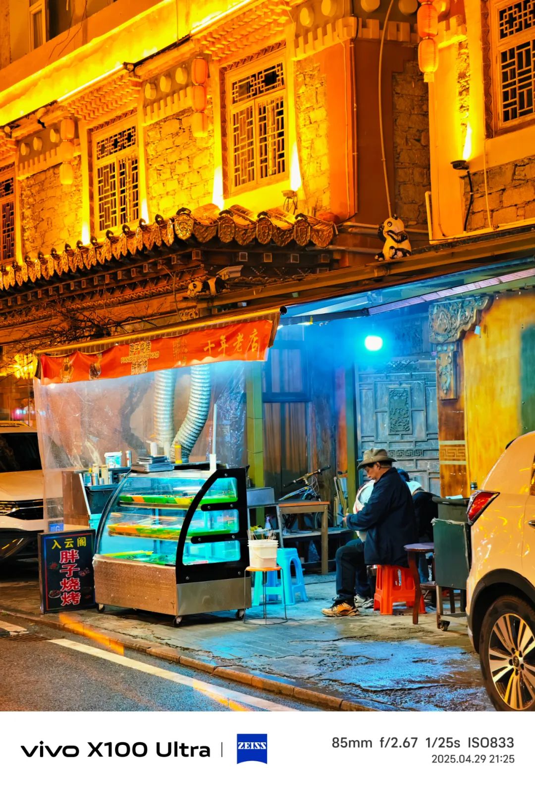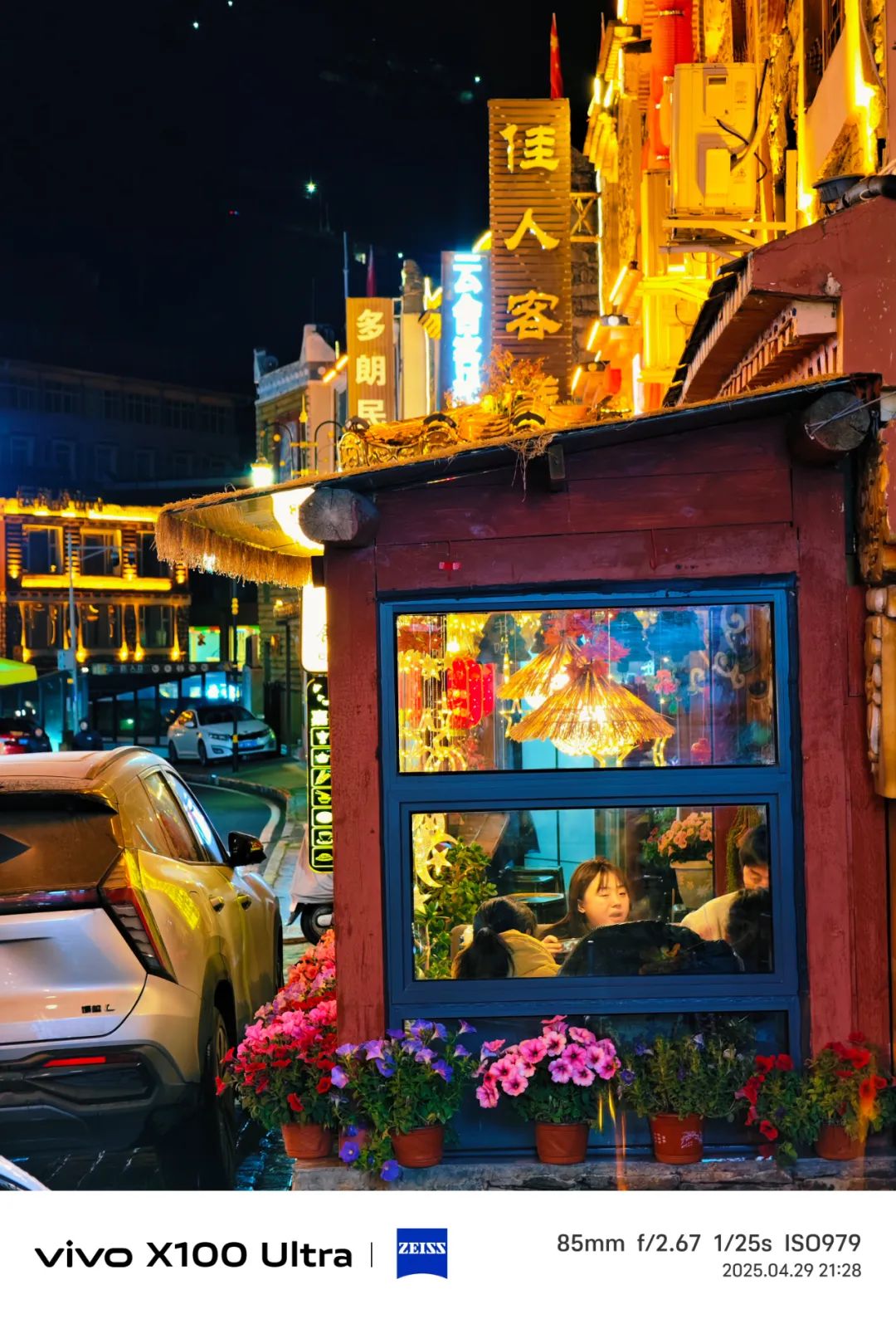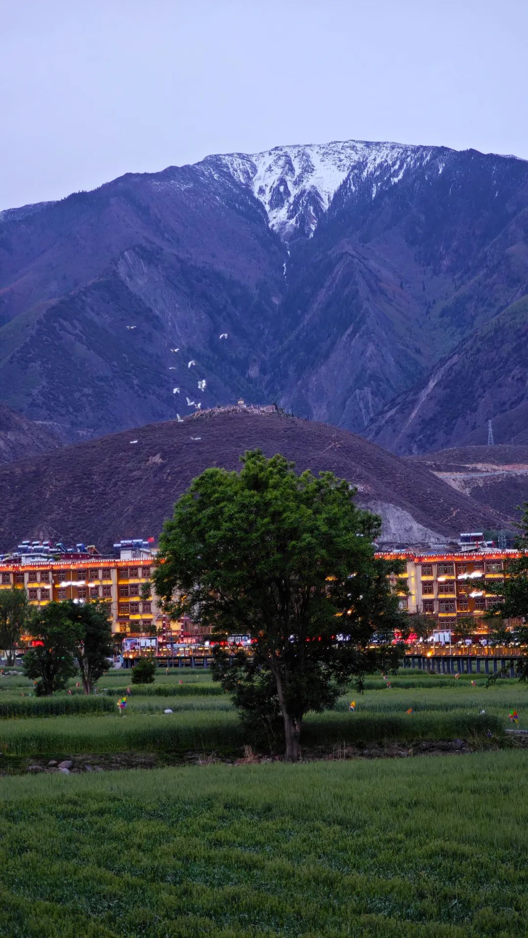 进了镇子,正巧碰上驮着货物的马帮 “嗒嗒” 地穿过马路,马蹄声伴着清脆的铃响。民宿老板早已在门口等候,热情地帮我们搬运行李,为寒冷的天气增添了几分暖意。夜晚大家围坐一堂,一锅热气腾腾、咕噜冒泡的牦牛肉火锅便是最大的满足。橙黄色的街灯亮起,四姑娘镇的轮廓比起白天的朦胧,反而显得清晰了几分。