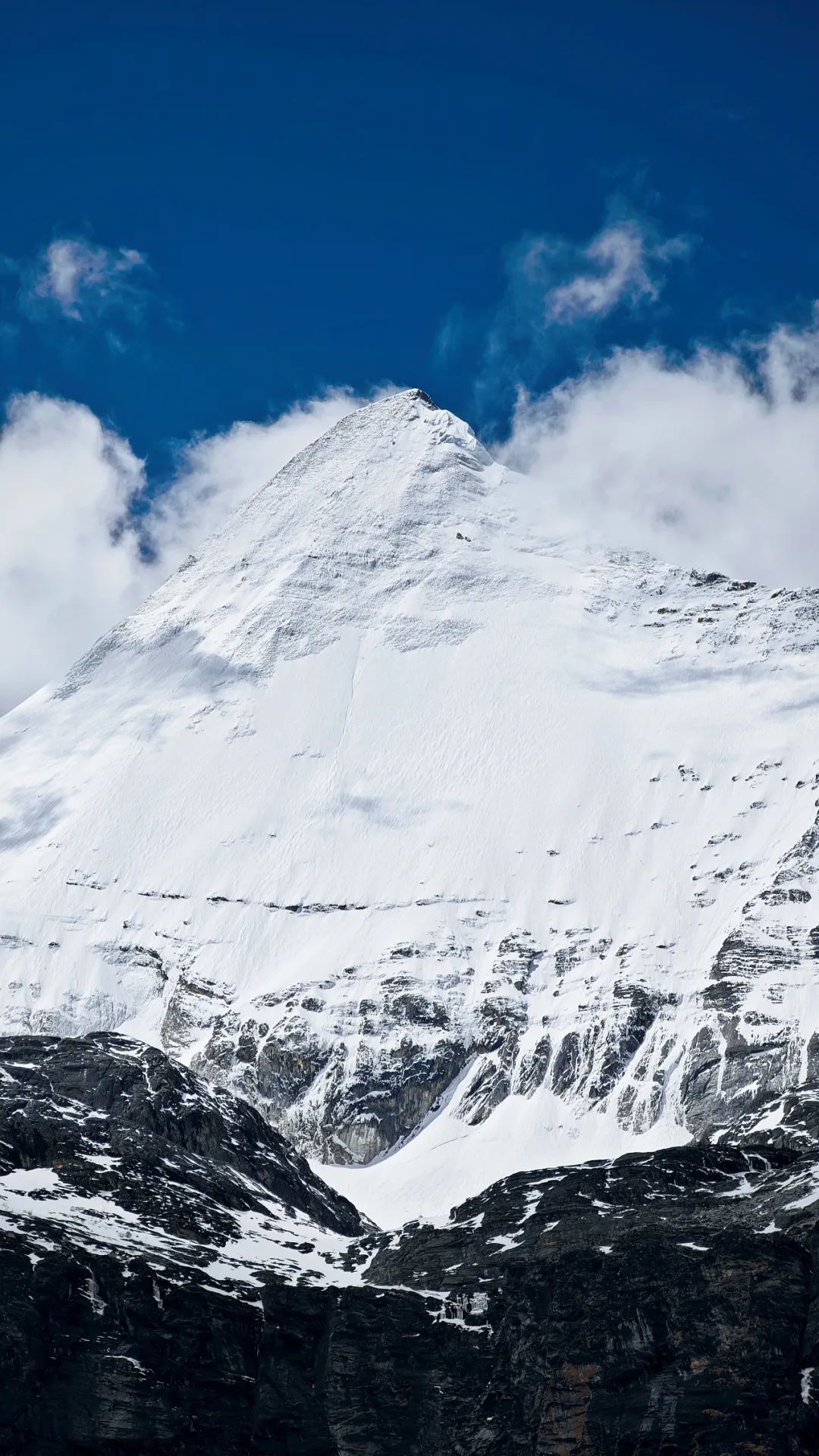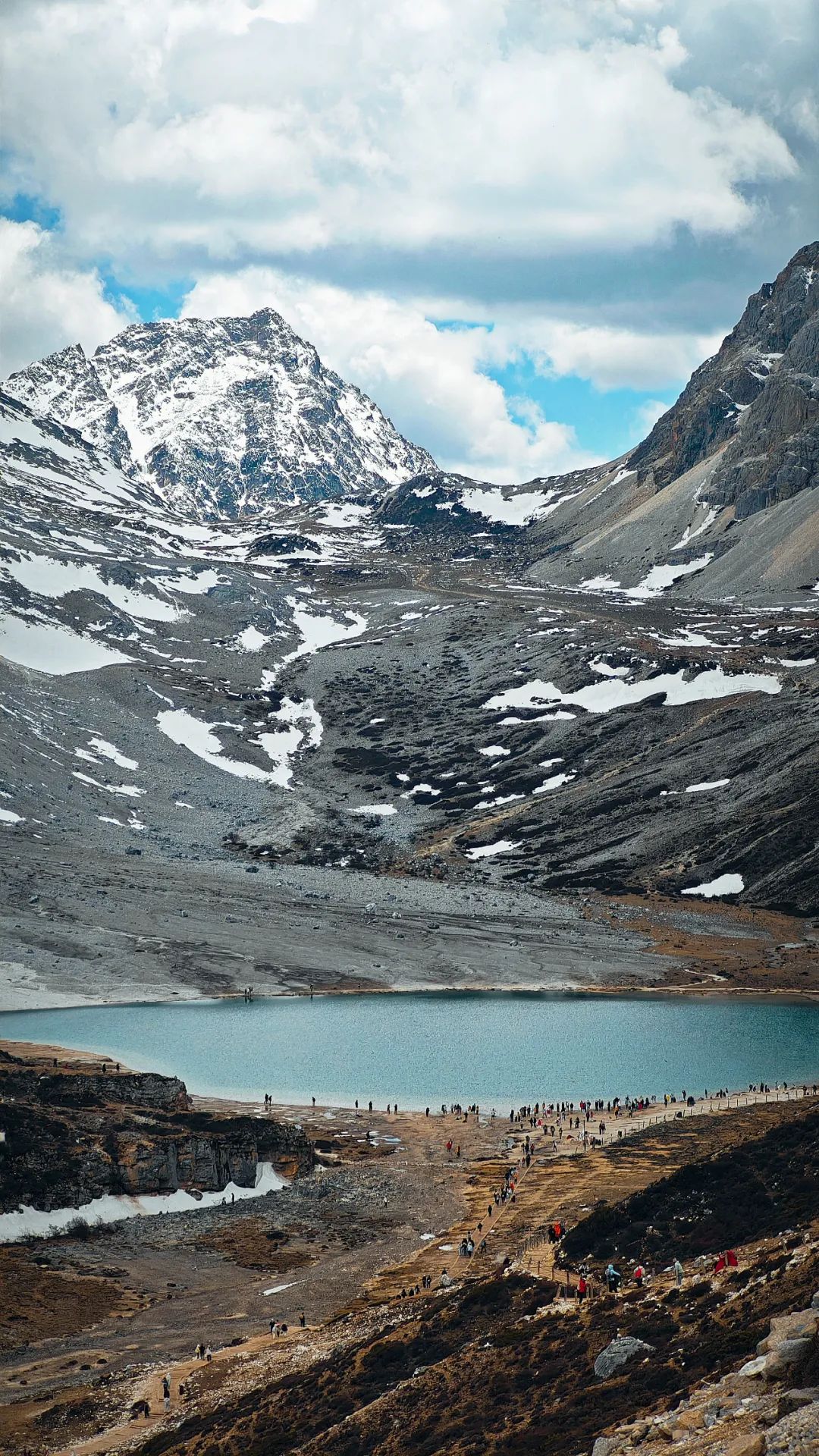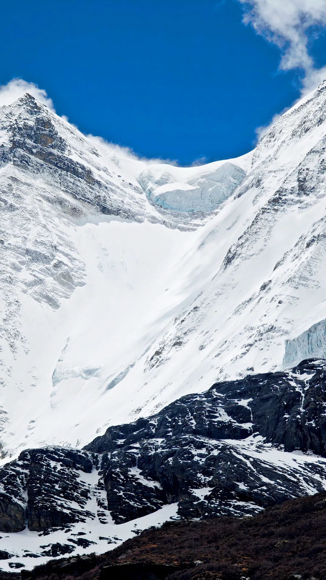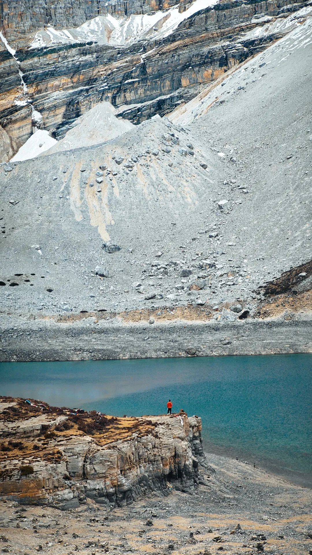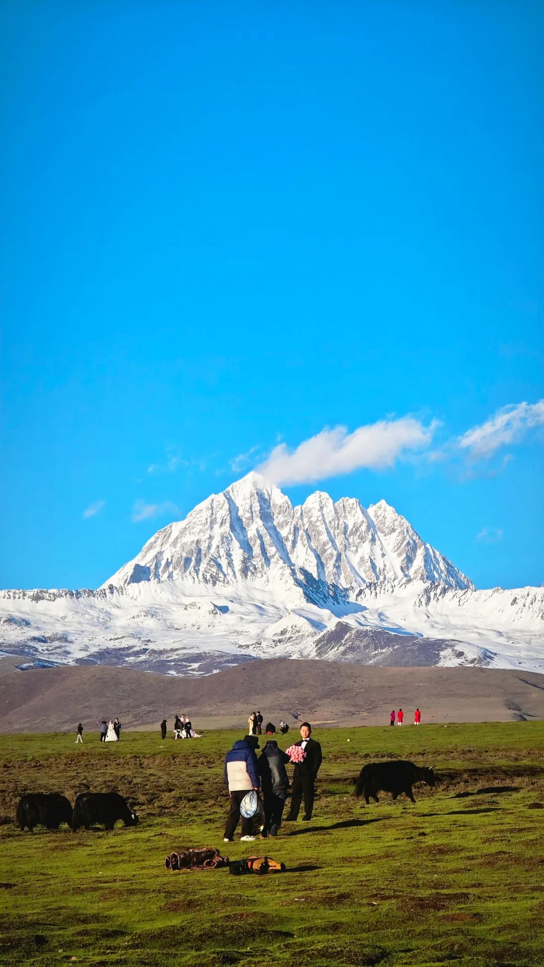 在海拔4000多米的高原爬山道上,我们上演真实的一步一喘气五步一吸氧,活像一群老式拖拉机开在盘山公路。路两边,雪线以上的雪山一眼望不到头,白花花的冰川在太阳底下亮得刺眼,裂缝阴影处藏着冰川独有的蓝,冷冽又神秘。雪线以下,山体裸露嶙峋,黑褐色的高山杜鹃东一丛西一丛,跟灰白色的岩石掺在一起,看着有点扎眼,却又透着一股倔强的生命力。在呼呼的喘气声中,我们这沿途的行人,倒像是闯进了一幅没上色完的粗犷水墨画里。