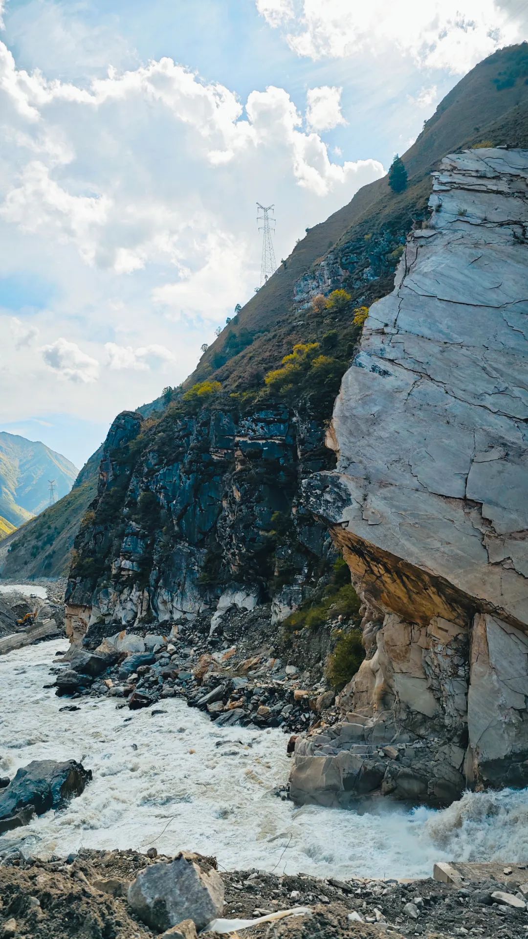 从巴塘出发,先是72公里满是落石的盘山公路开胃菜,翻越海拔近5000米的扎瓦拉山垭口到格木村,再走10公里仅够单车通行的险峻临崖山路海拔攀升900米穿越森林到拉拖拉山口,接着11公里非铺装炮坑道路沿着溪谷一路摇摆到夯达基地。