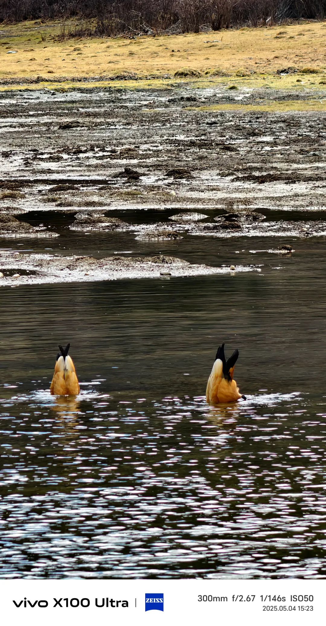 或许是期望过高,抑或是时节未到,牛奶海和五色海在这个时候确实差点意思,但谁说美景只在终点呢?鸳鸯把头扎进贡嘎里措撅起屁股嬉水,岩羊在洛绒牛场的草甸上悠闲吃草,松鼠在宁宁的“色诱”下给我们展现了全方位的吃食姿势,花岗岩上的地衣活像外星文字。当我们疲惫的在五色海边合影时,连仙乃日雪峰都在云端露出"孺子可教"的欣慰神情。