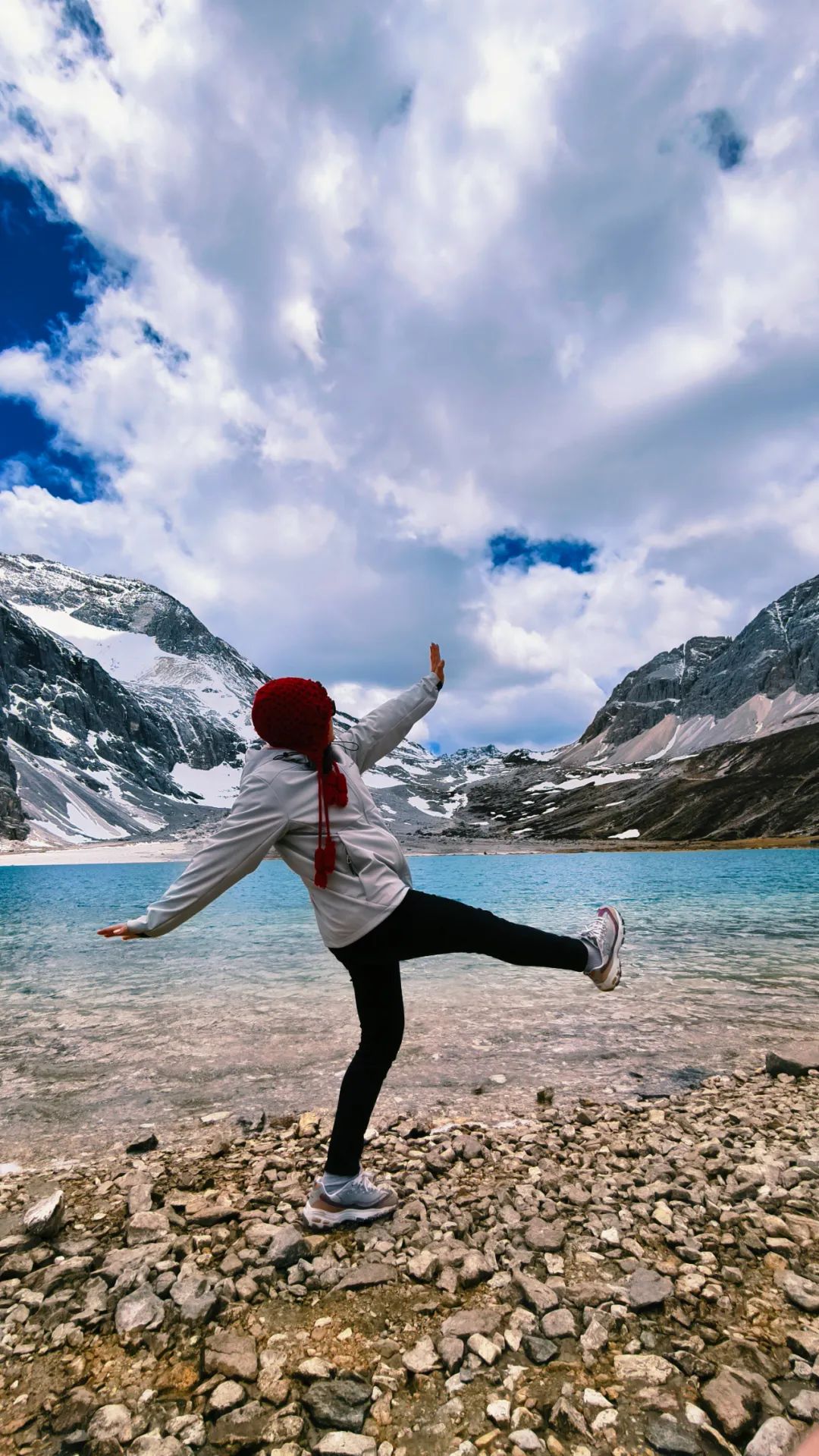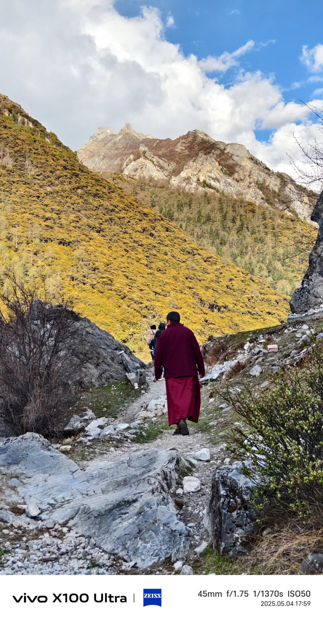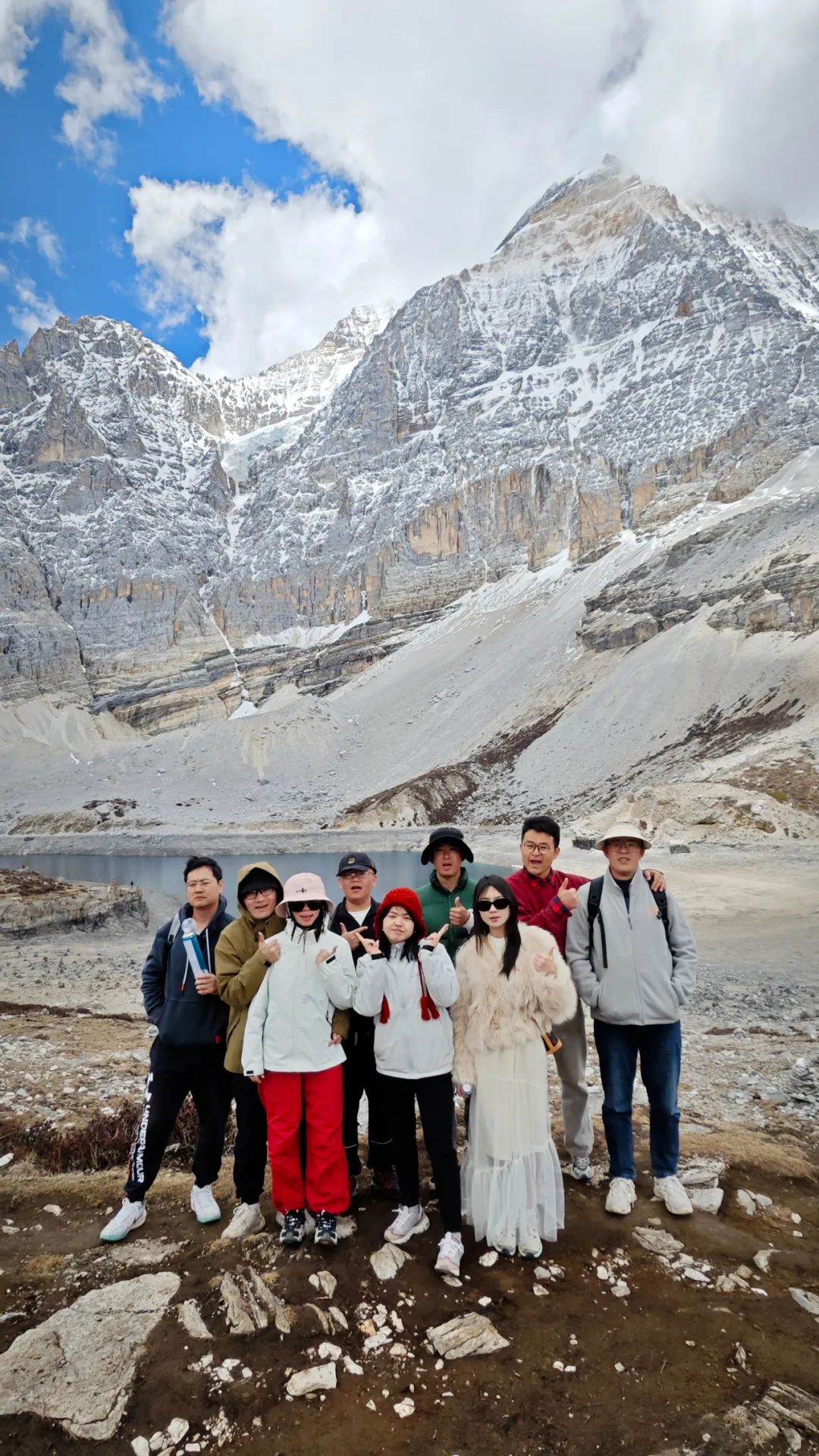 前一天晚上在酒店掼蛋时,听到到景区后全程徒步来回20多公里时,肖老板和兵哥表示难度太大,建议大家量力而行,选择自己合适的路线就好。德子更是掏出手机翻出海拔数据:"四千多米啊兄弟们!走路都喘啊,反正观光车的终点就是我的终点。" 结果到了景区,这三货突然化身高原博尔特。当我们还在徒步道上吸氧气时,他们已经在观景台吃着零食欣赏三神山等我们了。