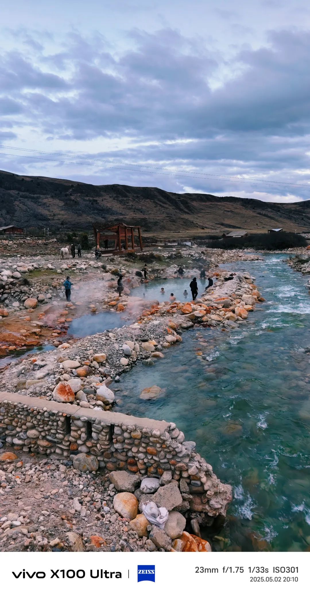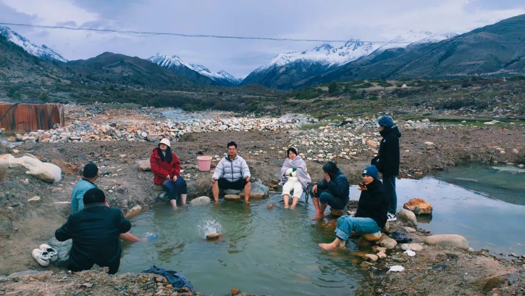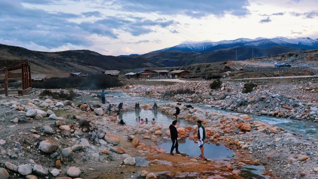 暮色渐浓,我们从观景台下来回到了然日卡村东的露天野生温泉。小桥把池子分成东西两区:东边小坑泡着村民和民宿老板,西边大池冒着水汽,人影朦胧,更多的人在泡澡。我和兵哥也入乡随俗,加入了东边泡脚的队伍,和大伙围坐在一起泡脚闲聊,他们问我们从哪里来啊,住哪里啊,适不适应啊等,我们一一做了回答。他们也推荐我们七八月份的时候来,漫山野花跟调色盘似的,还有赛马节,晚上围着篝火能跳通宵!”最绝的是他们说,天气好时抬头就能看见银河,“跟撒了把碎钻似的,掉在对面山坡上。”