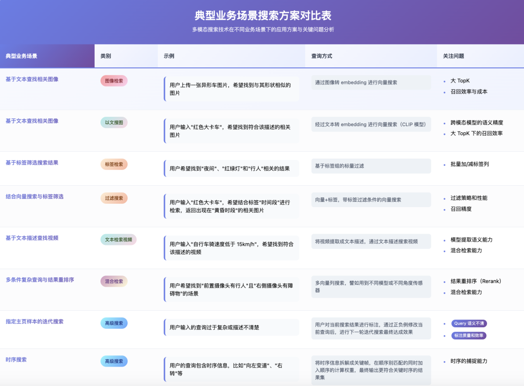早几年,行业会引入跨模态模型(如 CLIP)和向量搜索技术,生成弱标签或自然语言,并对其进行相似性检索,但这一时期的语义理解仍较粗糙。