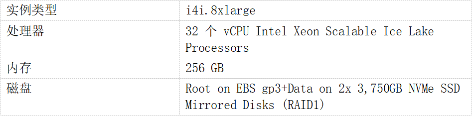 对于每个 EC2 实例,按照上一节的说明安装了数据库软件。有关使用的所有配置设置,请参见附录。