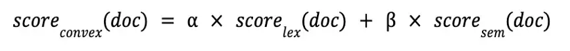 第一种方法叫做加权求和(Weighted Sum),将不同索引查询结果分别归一化,再进行加权计算。这里的权重来源于一些经验值,并根据具体的场景进行微调。例如可以把全文权重设置为 0.3,向量权重设置为 0.7。因此在有先验数据的情况下,这是一种较好的方法。