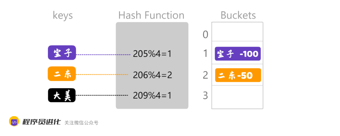 大美和宝子计算出来的数组下标都是1 ,通常处理这种情况有两种方法:一个是开放地址法,另外一个是链地址法。