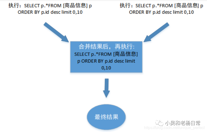 ,取出所有前两页数据,再结合排序条件计算出正确的数据。下图展示了进行 SQL 改写之后的分页执行结果。