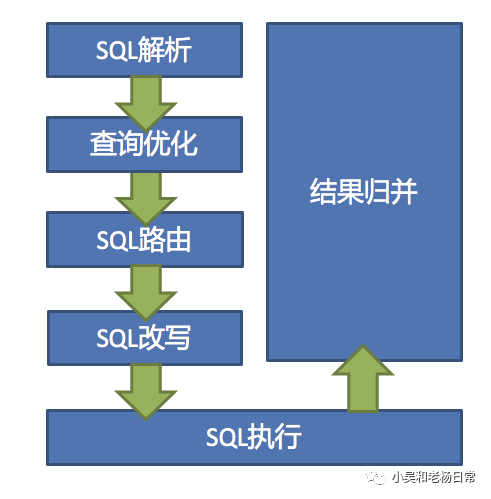 当Sharding-JDBC接受到一条SQL语句时,会陆续执行 SQL解析 => 查询优化 => SQL路由 => SQL改写 => SQL执行 =>结果归并 ,最终返回执行结果。