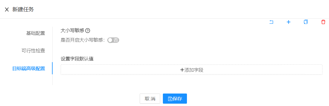 点击 目标端高级配置