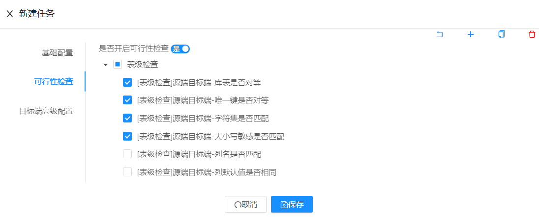 在新建任务中,选择源端和目标端后,配置各项参数