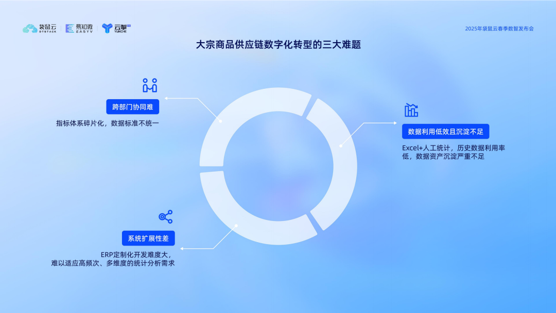 数据痛点——低效与沉淀不足:大部分统计分析工作仍停留在手工处理阶段,过度依赖Excel,耗时耗力,历史数据利用率不足30%,大量潜在业务价值被埋没,数据资产沉淀严重不足