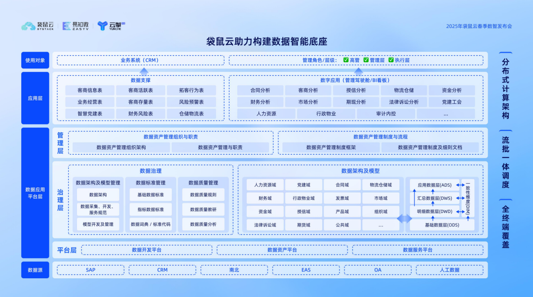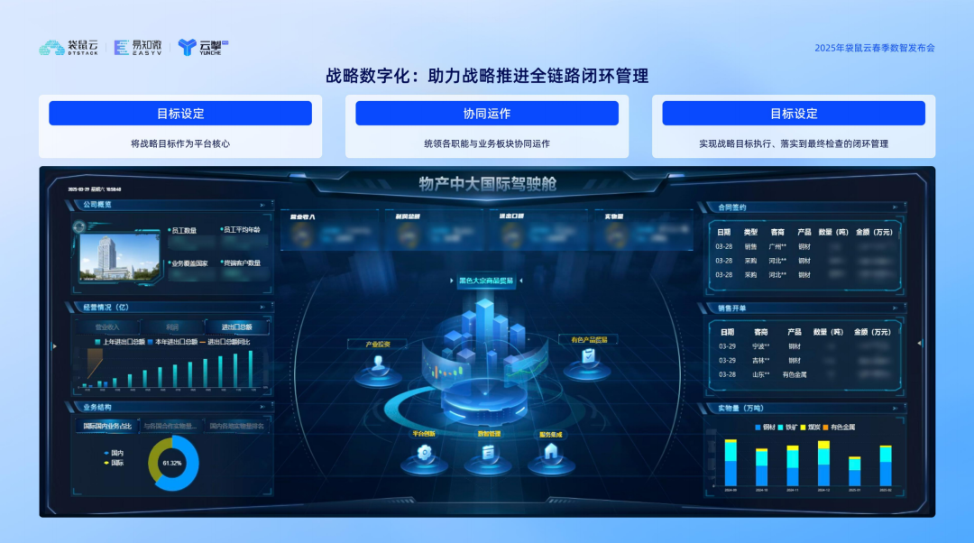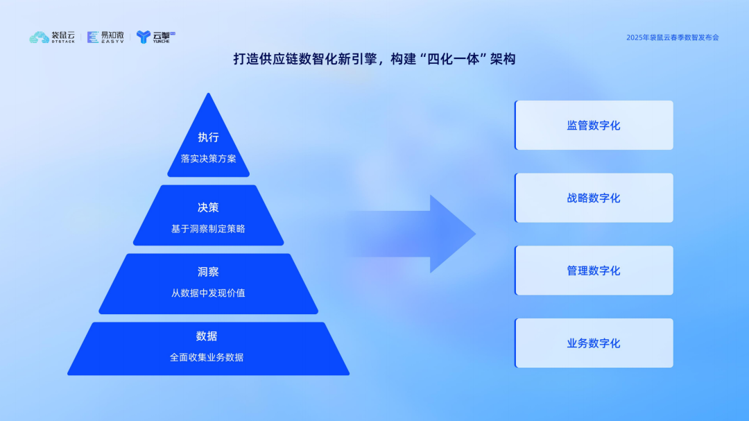 面对三大拦路虎,物产中大国际希望能够构建覆盖全产业链的数字化底座,实现“数据-洞察-决策-执行”的闭环管理,打破传统模式的束缚,让数据成为驱动企业发展的核心动力,构建“四化一体”的核心架构:分别是监管数字化、战略数字化、管理数字化、业务数字化。