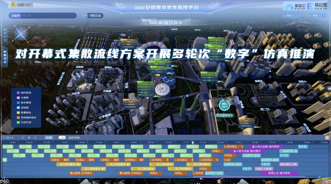 在安保方面,袋鼠云及易知微针对亚运会大型赛事管理现状和难度,提出了大型赛事场馆的安保解决思路及方案,围绕赛前、赛中、赛后三个环节进行整体设计。杭州亚运会数字孪生技术的应用将极大地提高赛事的组织和管理水平,为观众和参赛者提供更好的体验和安全保障。