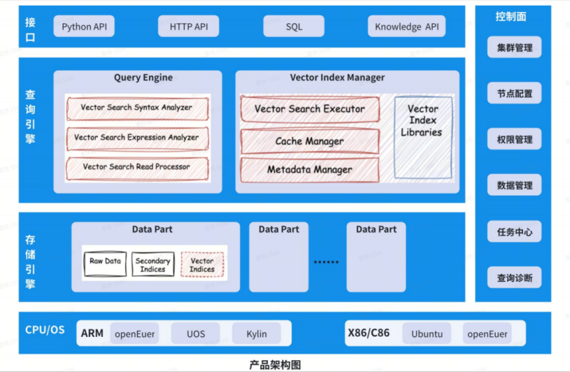 高性能向量检索:具备支持千亿级向量规模、万级QPS以及毫秒级查询延迟的能力。