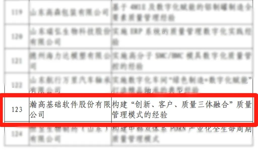 近日,山东省有关部门公示了『2025年全省质量标杆典型经验名单』,瀚高基础软件股份有限公司(以下简称“瀚高股份”)凭借卓越的质量管理实践成功入选,彰显瀚高在质量管理领域的领先实力和标杆示范作用。山东省质量标杆典型经验是山东省为大力培育质量标杆,加快提升工业品质量品牌,加强质量支撑,推动制造业高质量发展,面向企业征集在运用先进适用的质量管理方法和新一代信息技术全面提升发展质量和效益过程中,形成的具有示范效应、可借鉴、可推广的典型经验。图:瀚高股份“创新、客户、质量三体融合”质量管理模式