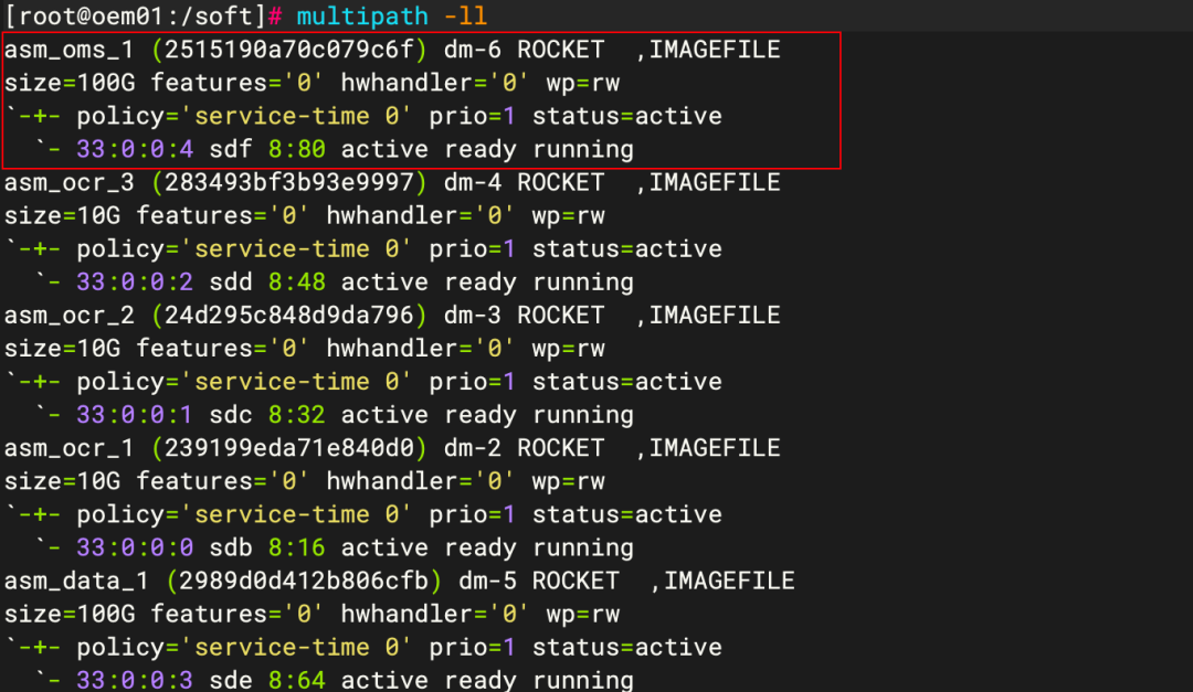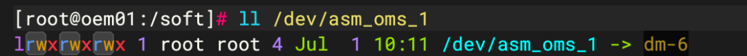 KERNEL=="dm-*",ENV{DM_UUID}=="mpath-2515190a70c079c6f",SYMLINK+="asm_oms_1",OWNER="grid",GROUP="asmadmin",MODE="0660"