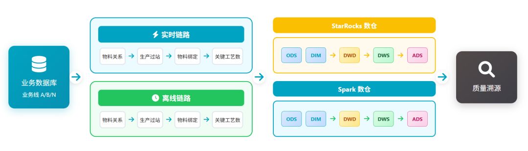 该制造商引入StarRocks作为质量溯源核心引擎,结合Spark SQL和Flink SQL构建高效数据处理流程: