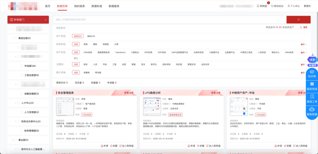 基于用户角色、历史行为及业务场景,通过深度学习模型构建动态推荐引擎,主动推送高价值数据资产(如关联报表、API服务)。