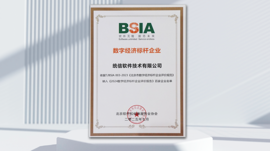 2025 年 7 月 2 日,《2024 北京市数字经济标杆企业评价报告》在 2025 全球数字经济大会专题论坛——2025 产业互联网创新发展论坛上正式发布。统信软件依托完善的产品、技术与解决方案,在助力我国数字经济发展方面取得显著成果,成功入选“数字经济标杆企业”。
