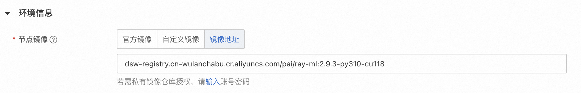 选择镜像地址,参考使用 ray-ml:2.9.3-py310-cu118