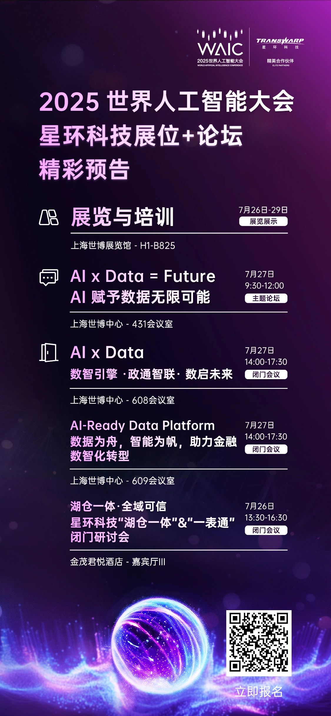 2025世界人工智能大会即将盛大启幕!作为AI基础软件设施领域的领导者,星环科技将第八次亮相WAIC。
