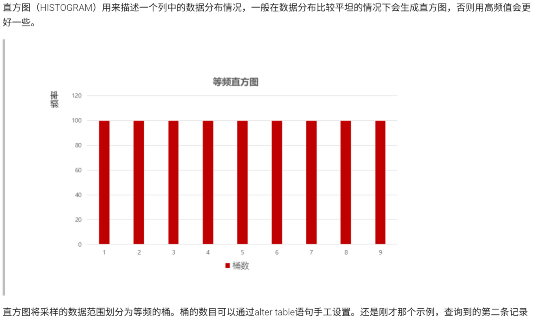 直方图是数据库用来判断列中数据分布情况的一种统计信息,属于列的统计信息。如果数据分布不均匀,查询优化器需要额外的信息才能做出正确的估算。直方图正是数据库为查询优化器提供更精确的成本估计而设计的一种直方图数据。其原理是假定存在n个桶(buckets),每个桶代表一个取值或者一个取值范围,将列中不同的值放入与之对应的桶中,通过这些桶的统计来得到列上数据分布的情况。