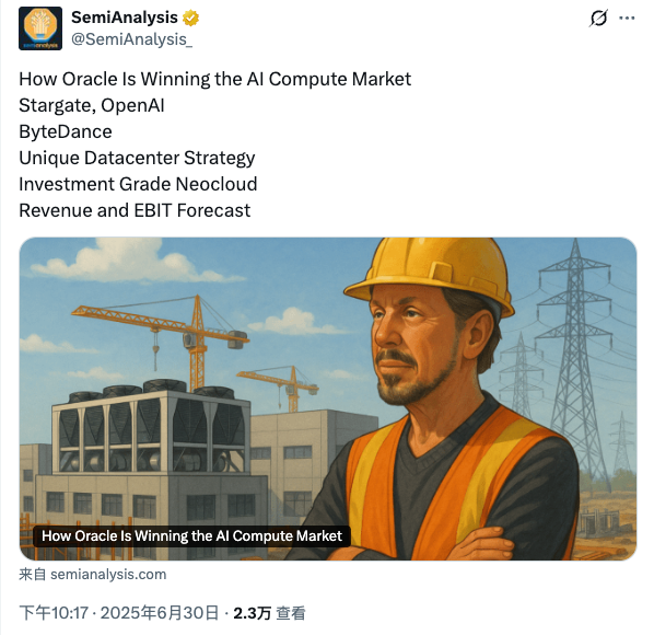 在这场“AI 基础设施军备竞赛”里,Oracle 是那种低调不吭声、但已经赚麻了的玩家。不靠炫技,不搞 PR,靠的是——“该签合同就签合同、该锁电就锁电”。