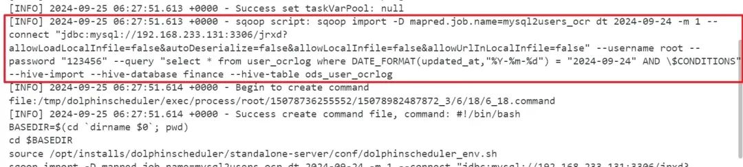 2024-09-25 14:34:33,674 WARN [main] tool.BaseSqoopTool (BaseSqoopTool.java:applyCredentialsOptions(1120)) - Setting your password on the command-line is insecure. Consider using -P instead.