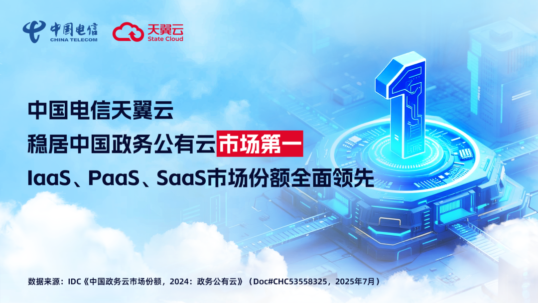 国际数据公司(IDC)近日发布《中国政务云市场份额,2024:政务公有云》(Doc#CHC53558325,2025年7月),中国电信天翼云以26.1%的市场份额,持续领跑中国政务公有云市场。近两年,天翼云在政务公有云基础设施(IaaS)、平台(PaaS)和软件(SaaS)三大细分领域均拔得头筹,展现出全方位的技术实力。