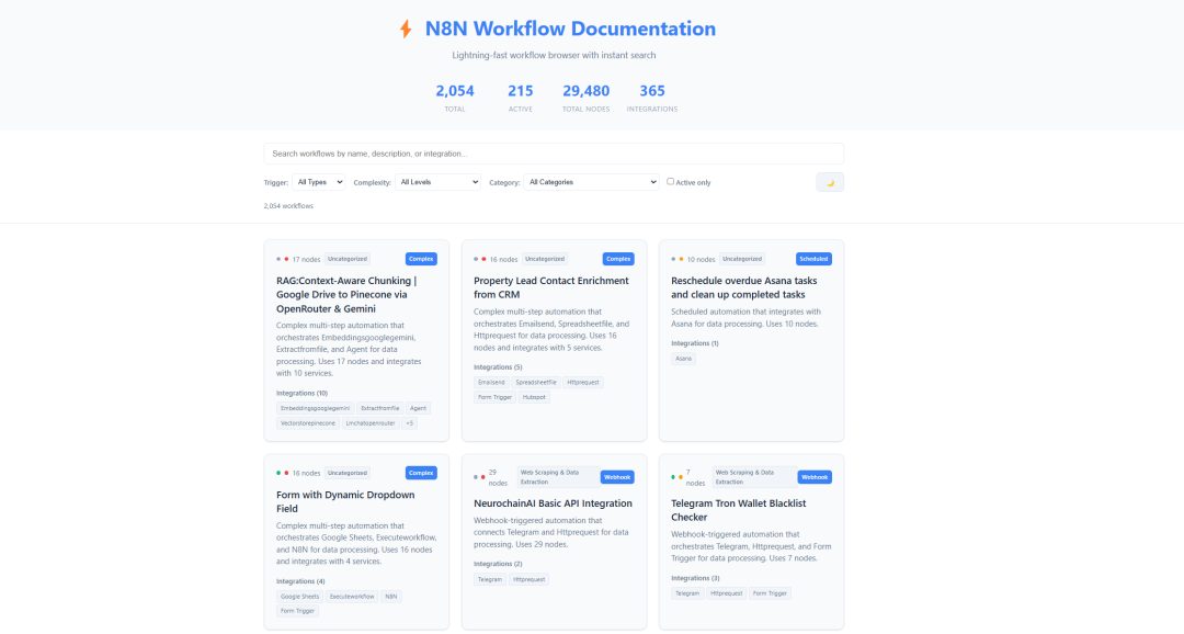 学习新工具最大的障碍是不知道从哪里开始。这里有一个宝藏开源项目:https://github.com/Zie619/n8n-workflows