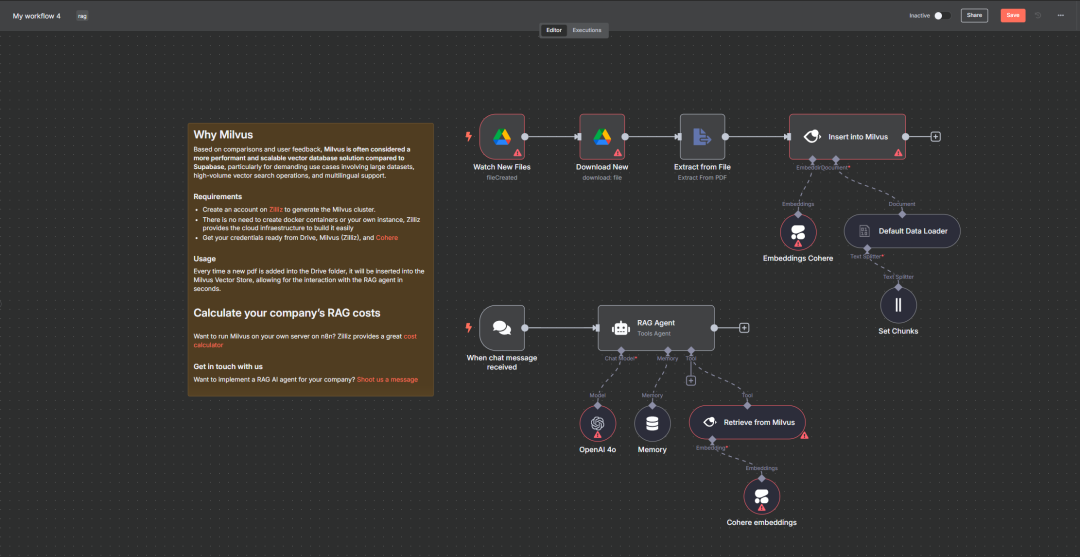 具体的N8N+Milvus workflow教程,可以参考这篇文章: