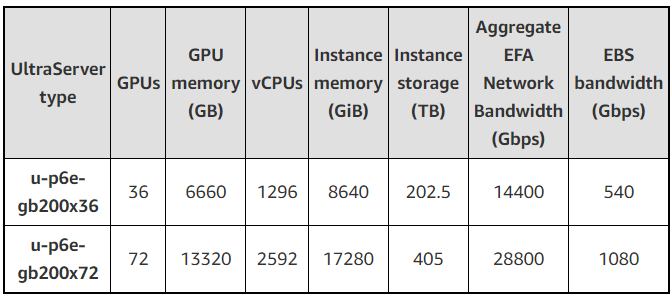 Amazon EC2 P6e-GB200 UltraServer是亚马逊云科技迄今为止最强大的GPU产品,配备最多72个NVIDIA Blackwell GPU,这些GPU通过第五代NVIDIA NVLink互连,并作为单一计算单元运行。每台UltraServer可提供高达360 petaflops的高密度FP8算力,以及13.4TB的高带宽显存(HBM3e)——相比P5en实例,在单个NVLink域内的计算能力提升超过20倍,内存容量提升超过11倍。Amazon EC2 P6e-GB200 UltraServer支持高达28.8 Tbps的第四代Elastic Fabric Adapter(EFAv4)网络带宽。